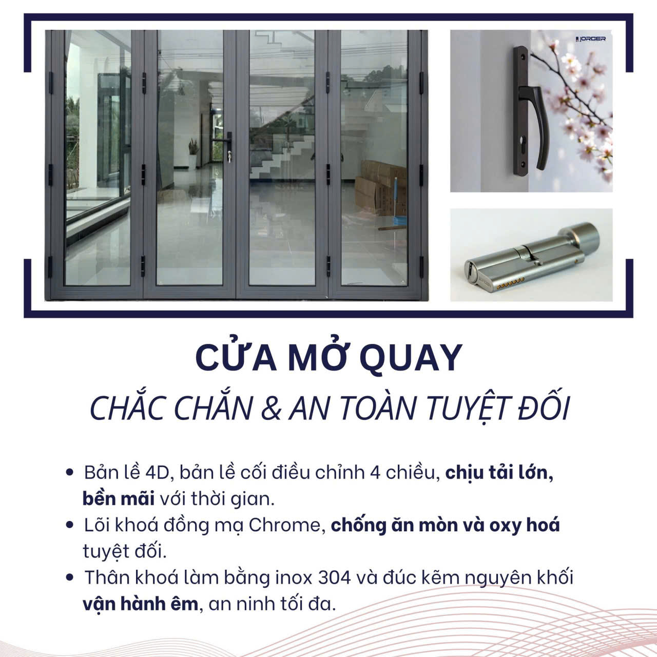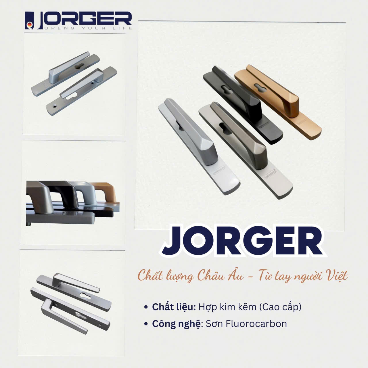 JORGER – a premium aluminum door hardware brand built on the pride of Vietnamese craftsmanship, with a mission to create lasting value for architectural projects. Beyond refined design and outstanding quality, JORGER places strong emphasis on research, testing, and product optimization to suit Vietnam’s unique climate conditions—hot, humid, with frequent rainfall and high temperature variations.